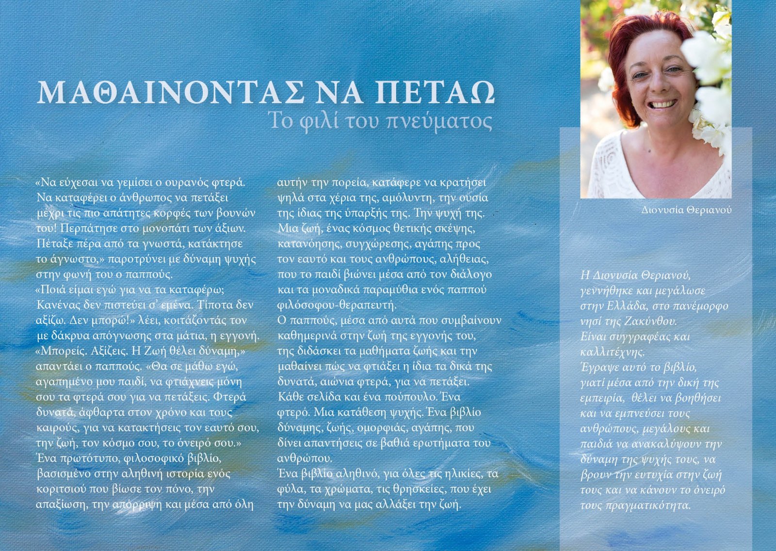Η Διονυσία Θεριανού εγκαινιάζει μια καινούργια γραφή στην Λογοτεχνία που συνδυάζει την Φιλοσοφία, το Παραμύθι, την αυτογνωσία.